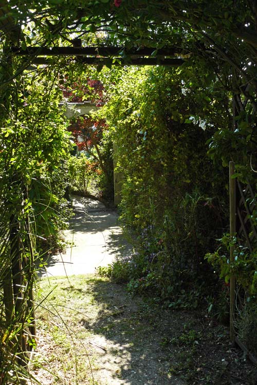 This is the carefully placed archway, leading to a "woodland Walk" in Pam's fabulously designed garden. This picture was taken during the 2011 St Margaret's Garden Safari on July 2nd